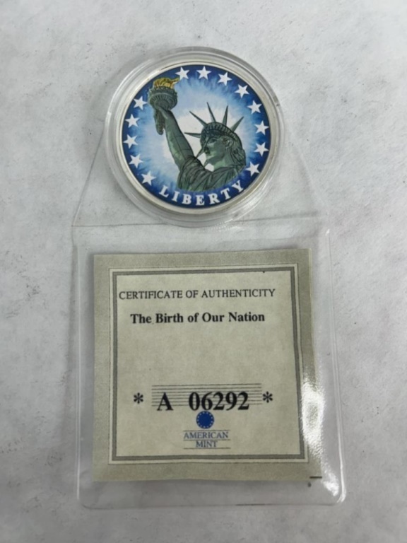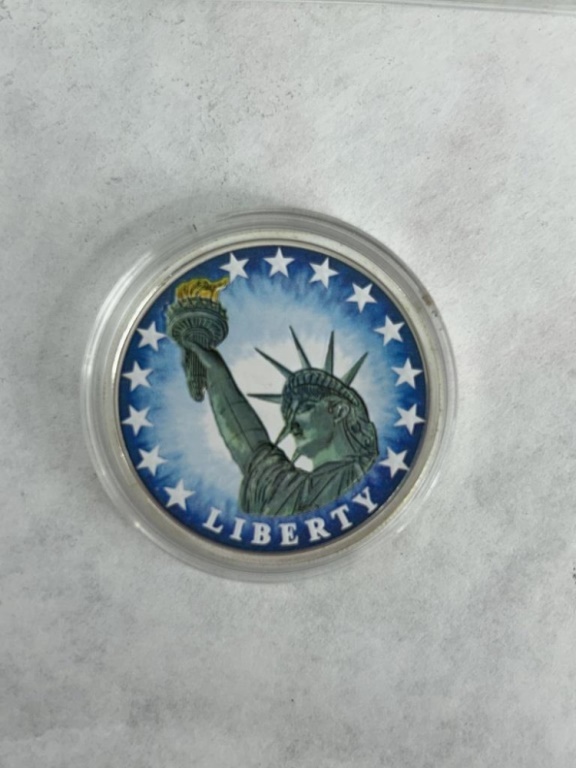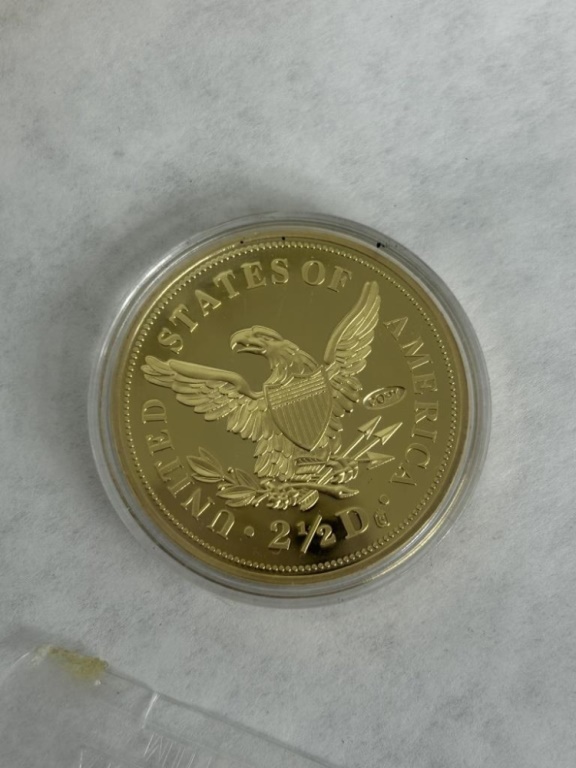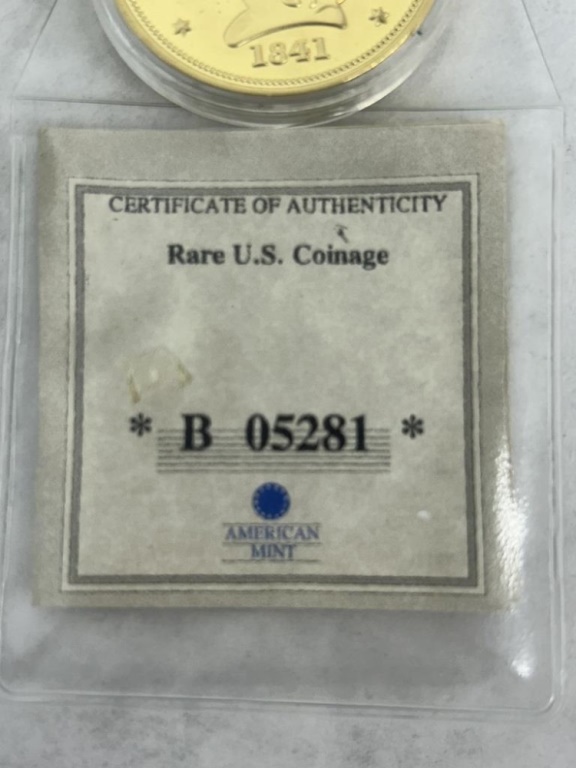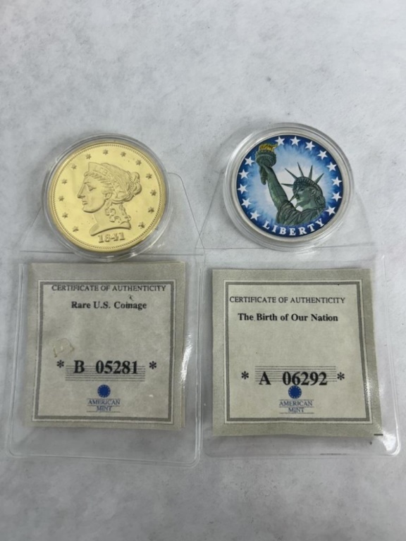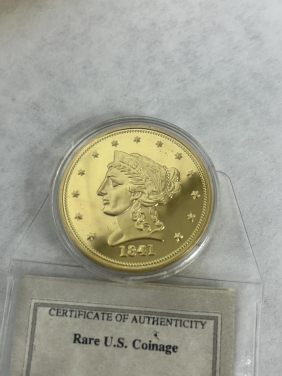 1841 GOLD CORONET 1/4 EAGLE COPY AND STATUE OF LIBERTY COLOR COIN