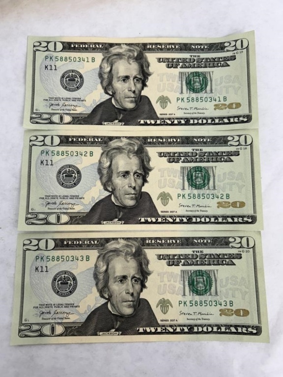 2017 SEQUENCIAL SERIAL NUMBER $20 BILLS
