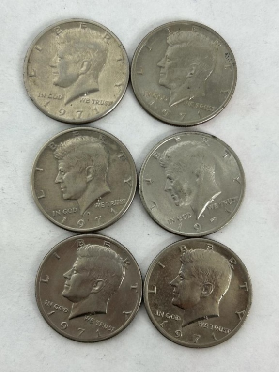 1971 KENNEDY HALF DOLLARS SIX TOTAL