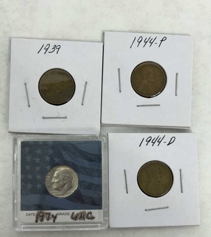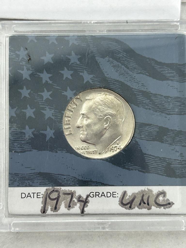 1974 LIBERTY DIME, TWO 2005 BUFFALO NICKELS, LINCOLN PENNIES
