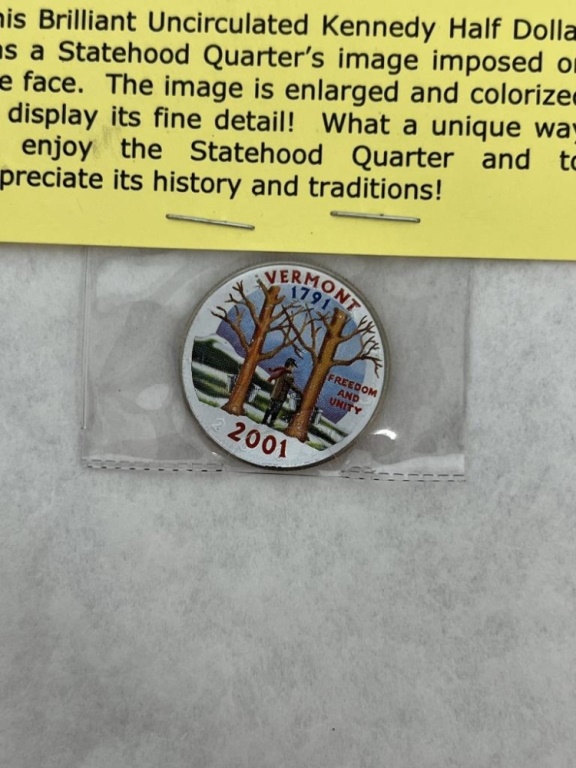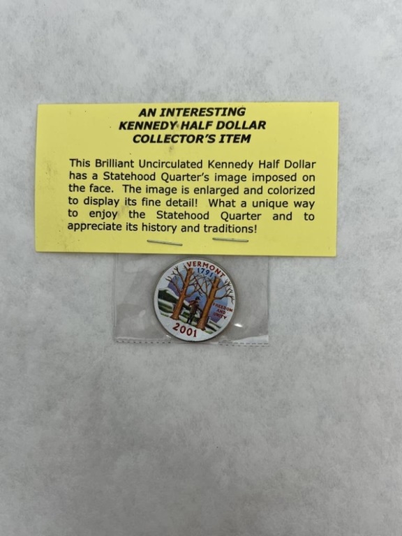 KENNEDY HALF DOLLAR COLLECTORS ITEM FEATURING VERMONT DATED 2001