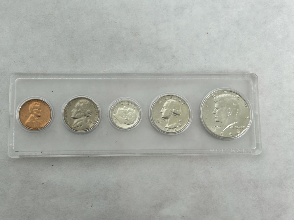 1964 MINT SET INCLUDING PENNY, NICKEL, DIME, QUARTER, AND HALF DOLLAR