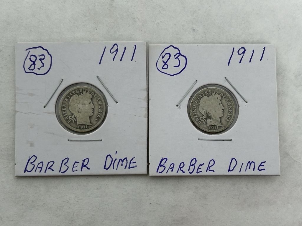 LOT OF TWO 1911 BARBER DIMES