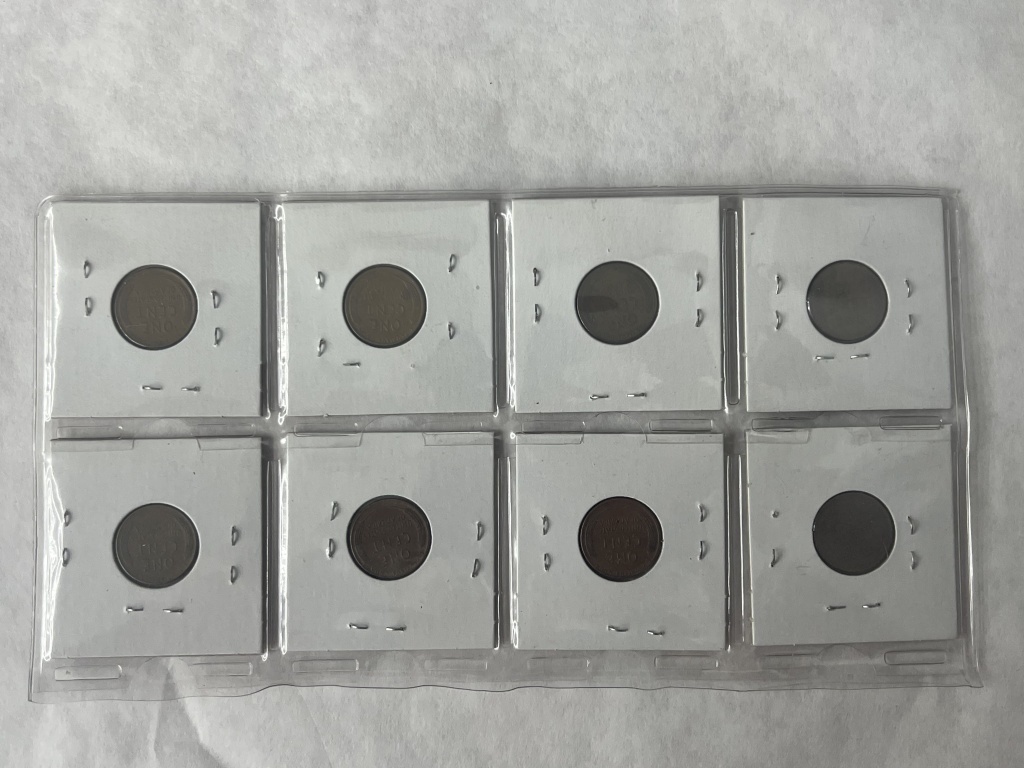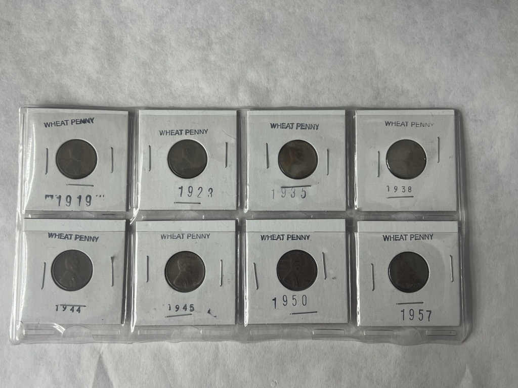 SHEET OF 8 WHEAT CENTS YEARS INCLUDING 1919, 1923,1935,1938,1944,1945,1950,1957