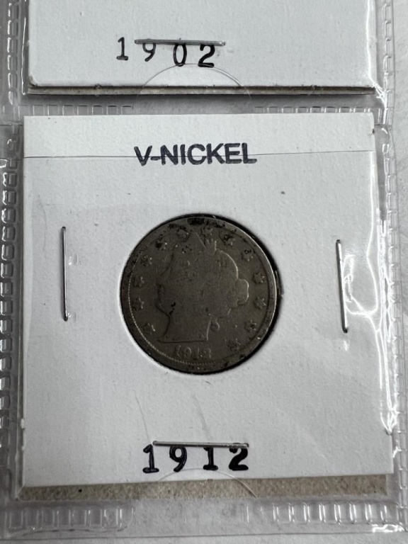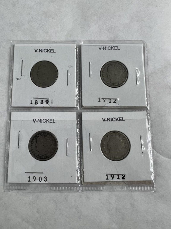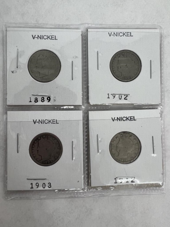 LOT OF V-NICKELS INCLUDING YEARS 1889,1902,1903,1912