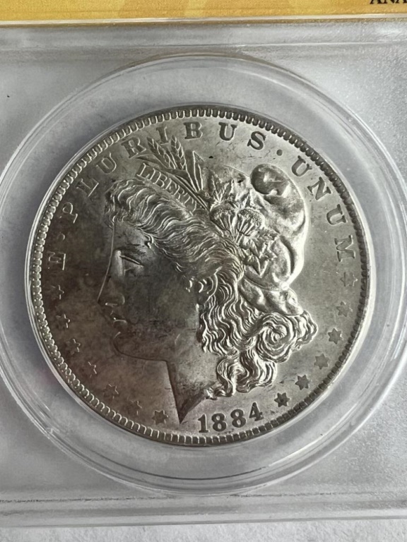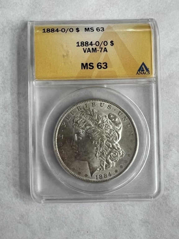 1884 0/0 MORGAN DOLLAR VAM-7A ANACS GRADE MS-63