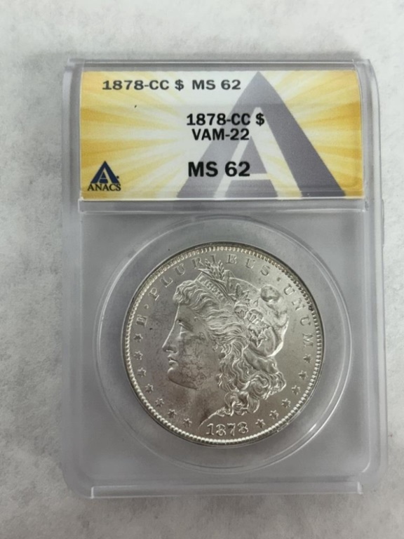 1878-CC VAM-22 MORGAN DOLLAR ANACS GRADE MS-62