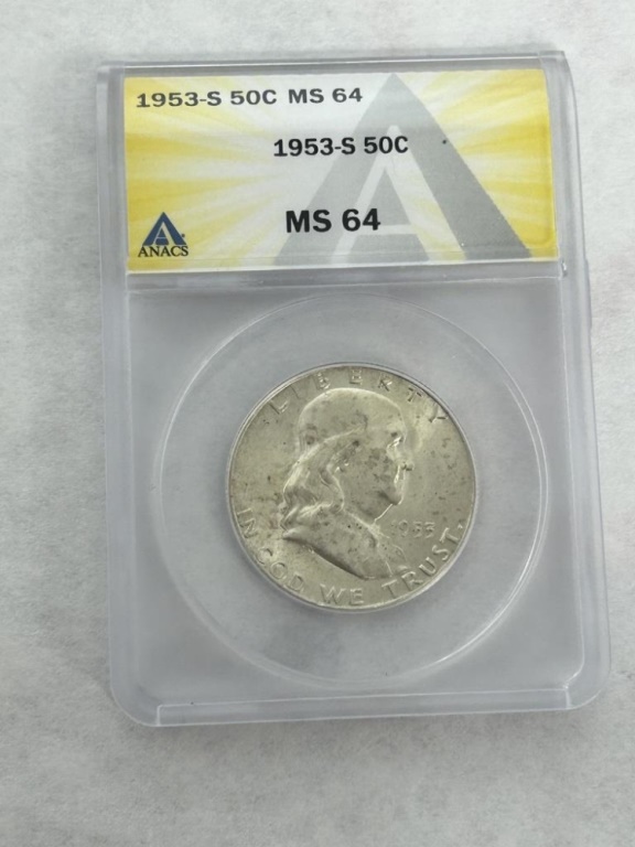 1953-S FRANKLIN DOLLAR ANACS GRADE MS-64