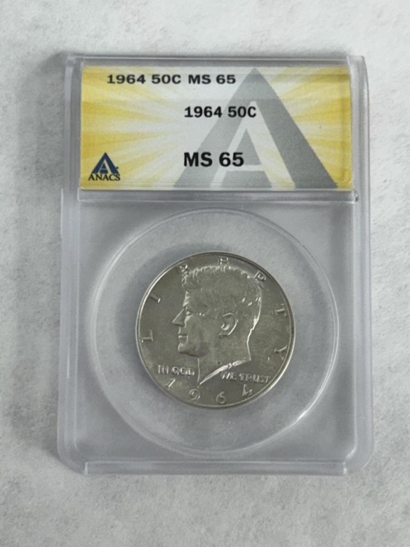 1964 KENNEDY HALF DOLLAR ANACS GRADE MS-65