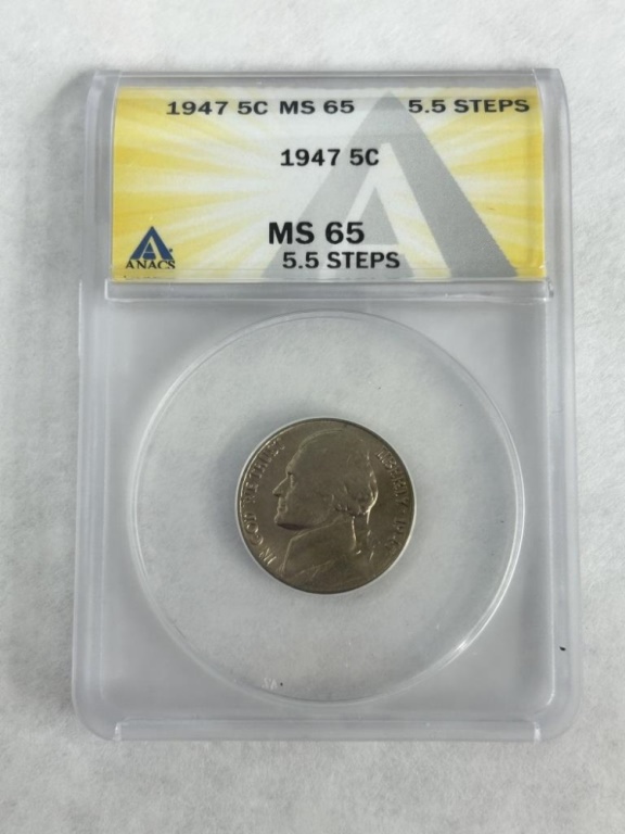 1947-P NICKEL 5.5 STEPS ANACS GRADE MS-65