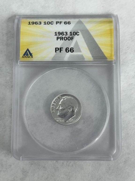 1963-P DIME ANACS GRADE PF-66