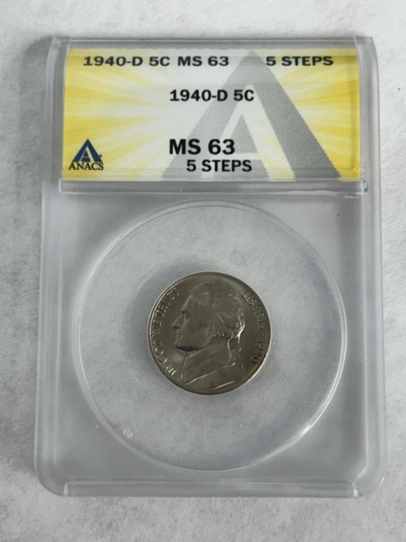 1940-D NICKEL 5 STEPS ANACS GRADE MS-63