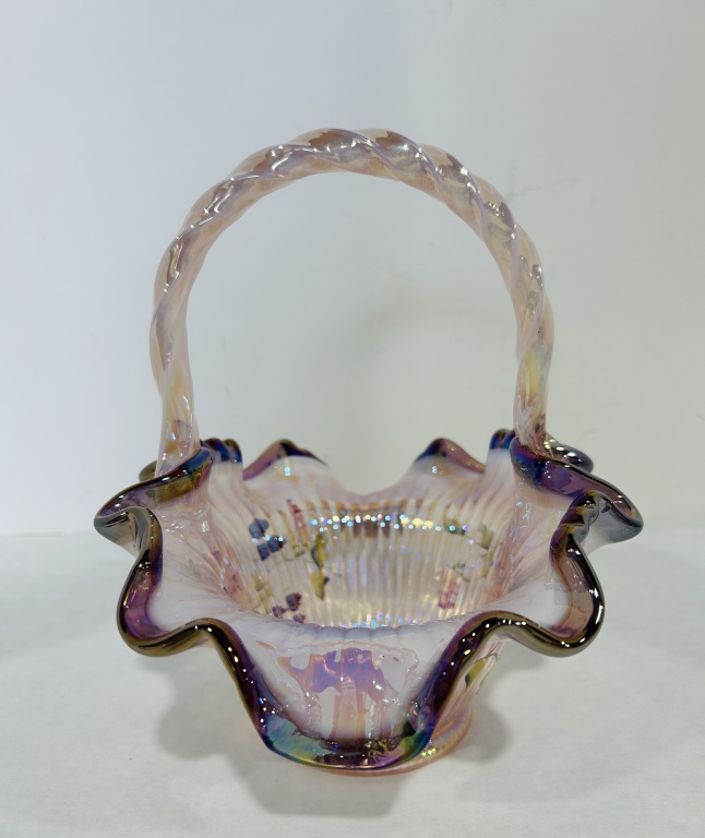 HANDPAINTED MORNING GLORY FLOWERS BILL FENTON AND GEORGE FENTON ON BOTTOM OF BASKET