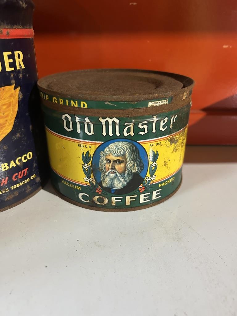 ALSO INCLUDES VINTAGE OLD MASTER COFFEE TIN CANISTER