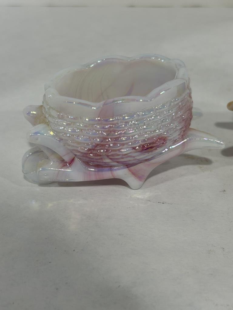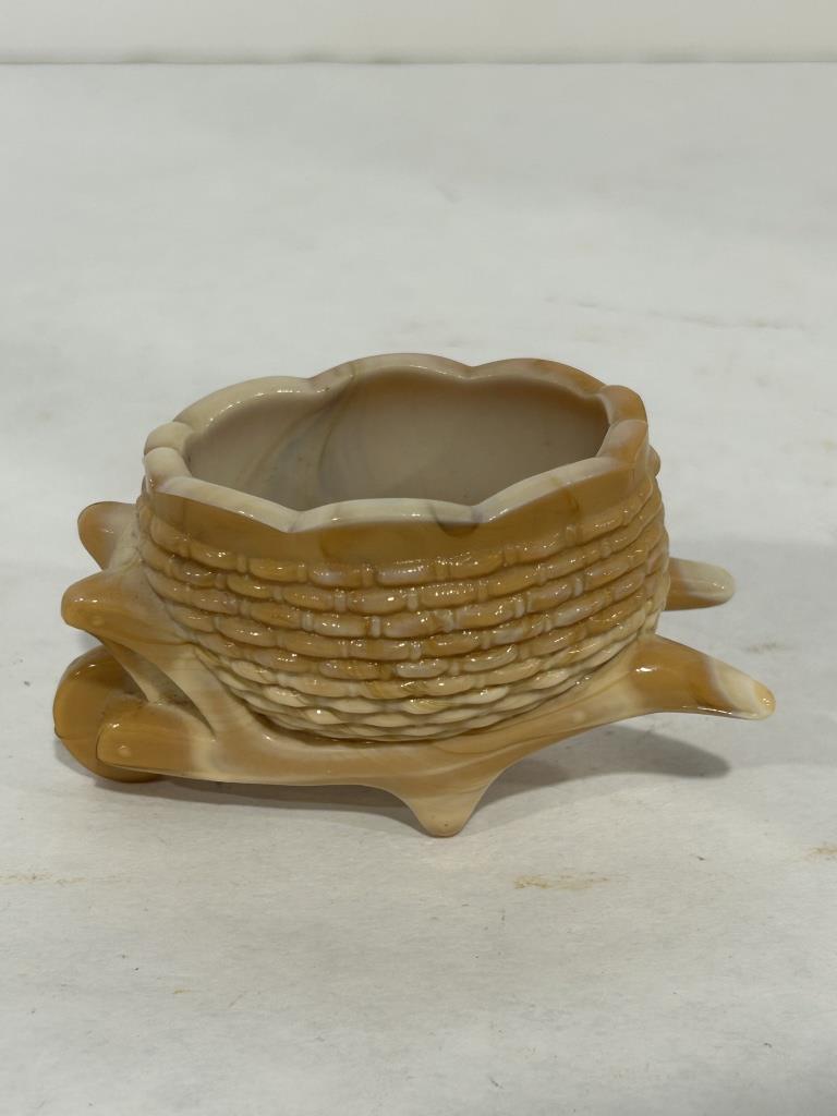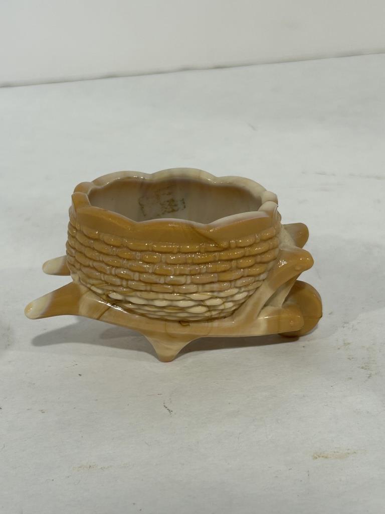 LOT ASLO INCLUDES CARMEL SLAG WHEEL BARREL TOOTHPICK HOLDER