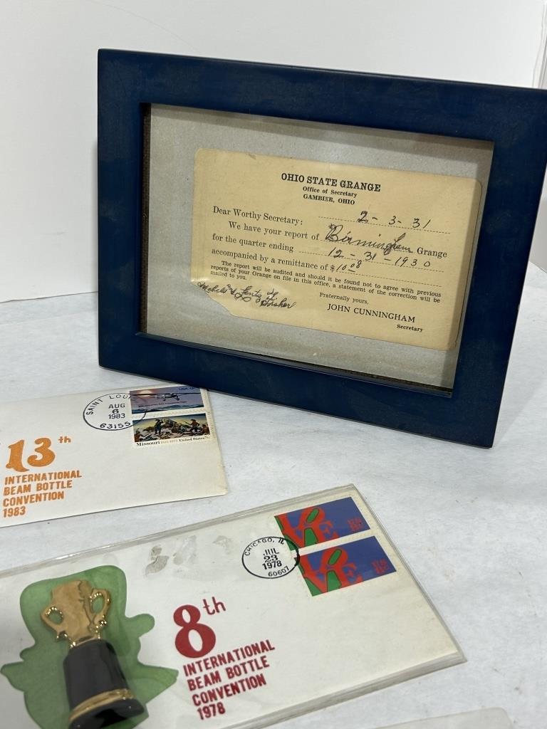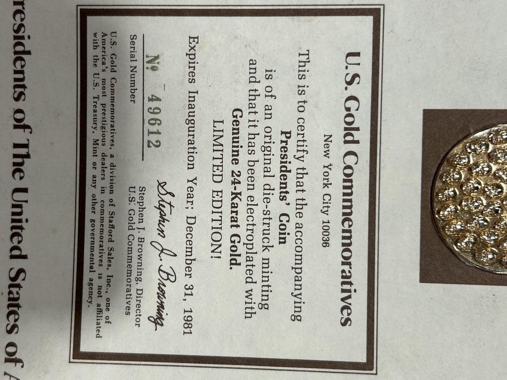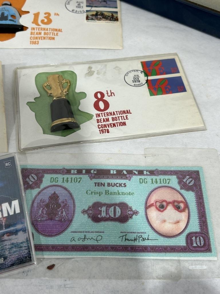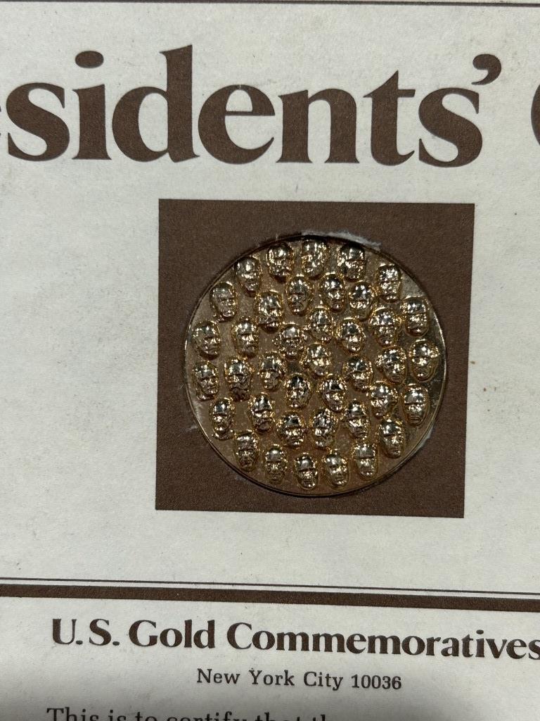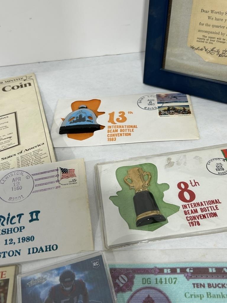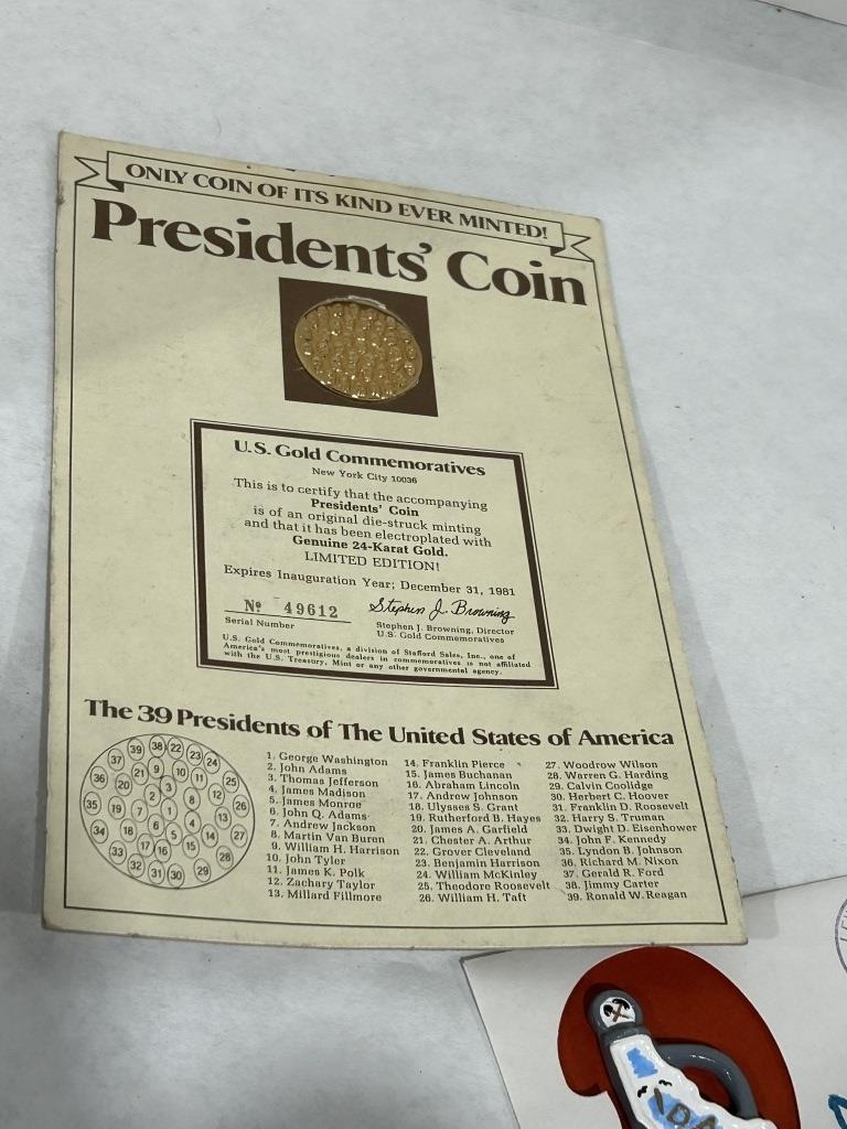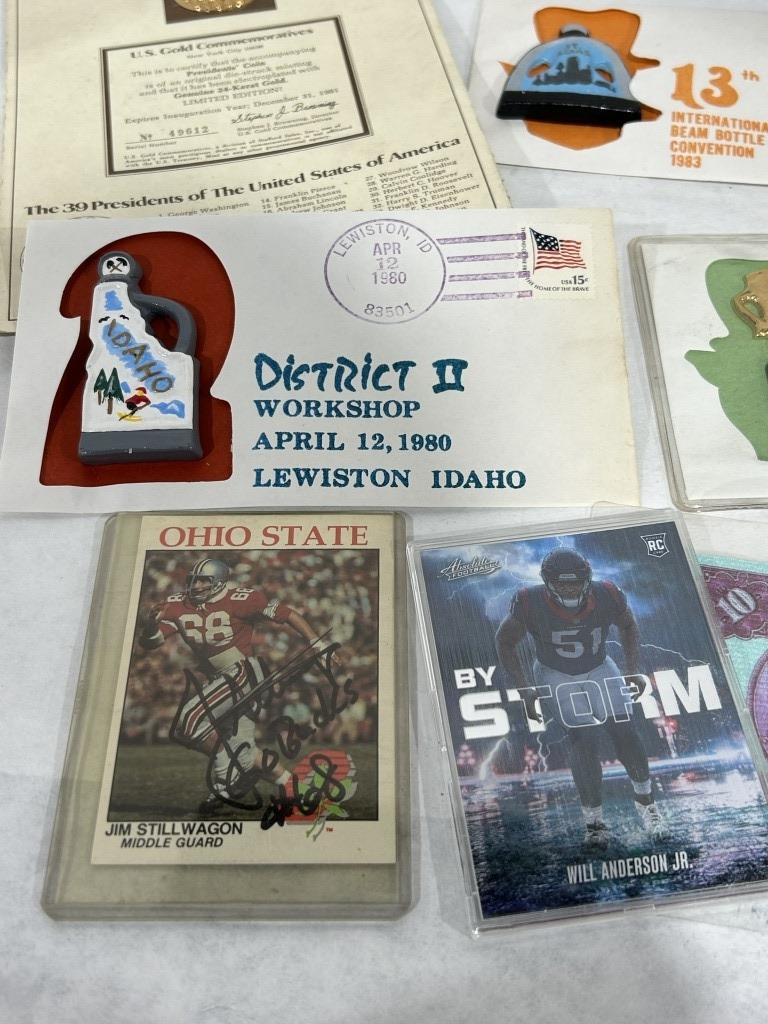 GOLD PLATED PRESIDENTIAL COIN, BEAM BOTTLE CONVENTION MEMERABILIA, SIGNED JIM STILLWAGON FOOTBALL CARD