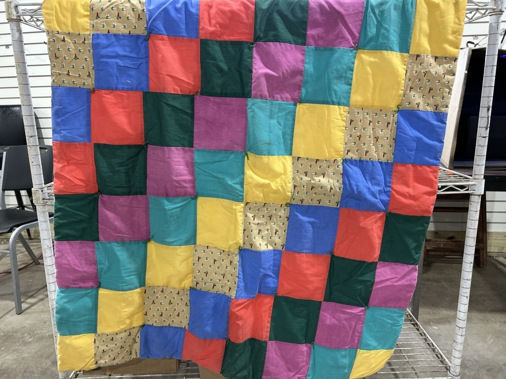 LOT INCLUDES 2 VINTAGE LAP QUILTS AND VINTAGE WALL DECOR