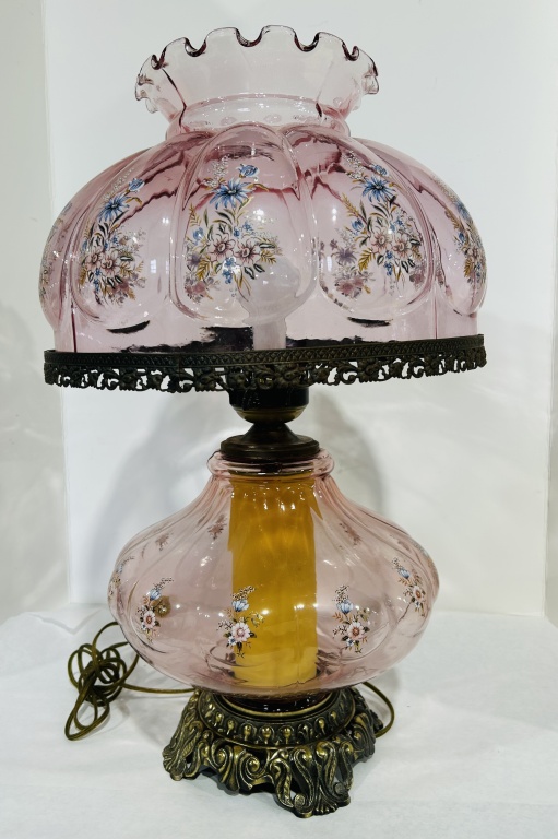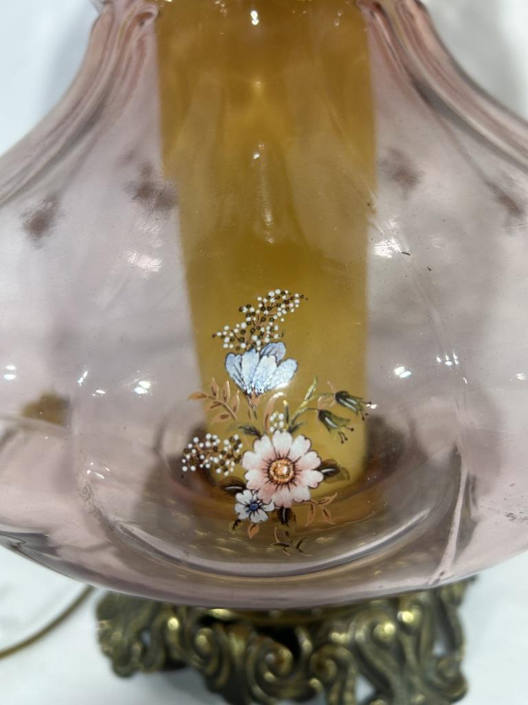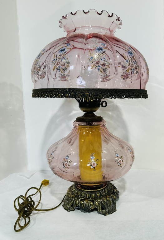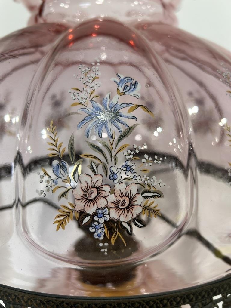 VINTAGE CARL FALKENSTEIN, PINK GLASS WITH FLORAL DETAIL