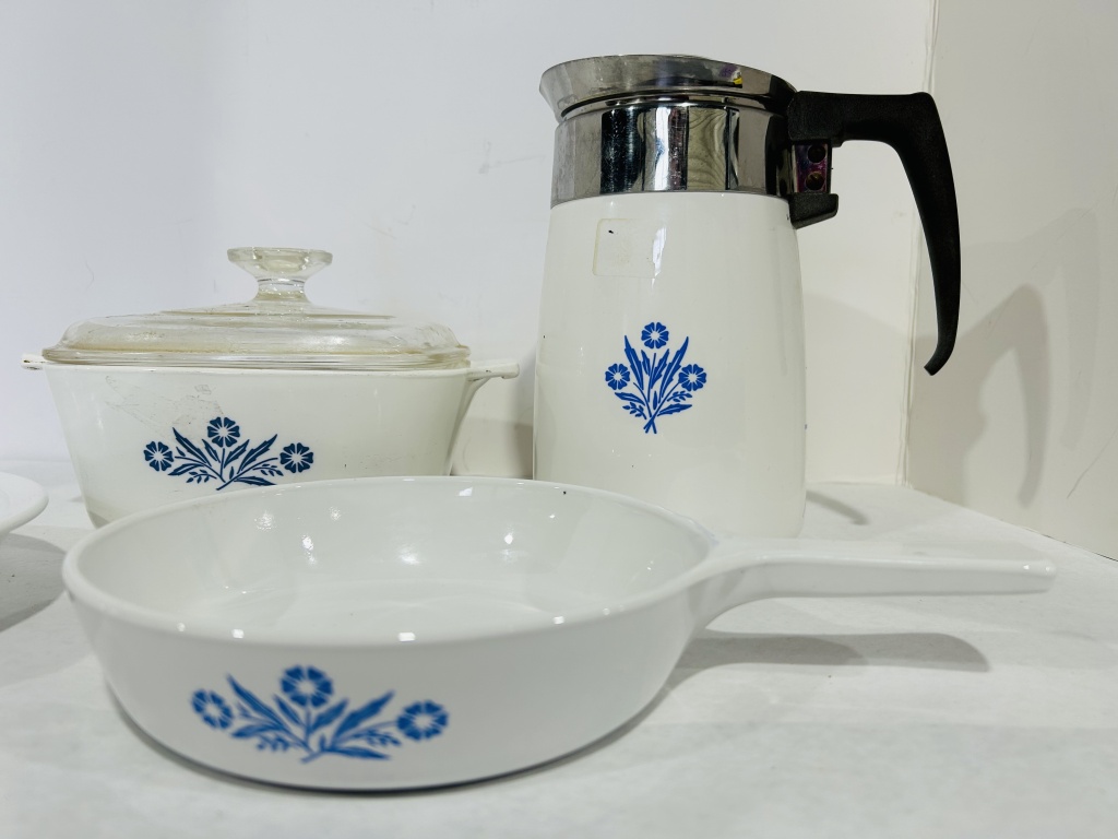 INCLUDES 6 CUP COFFEE POT, PIE PLATE, CASSEROLE DISH AND 6 1/2 INCH DISH WITH HANDLE