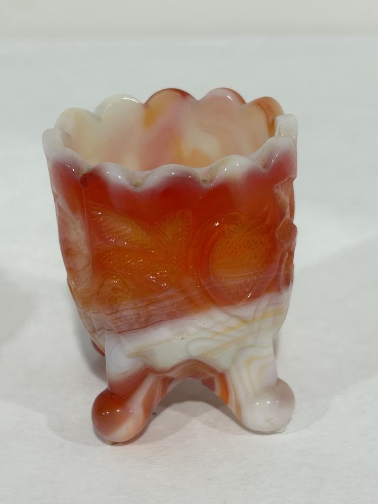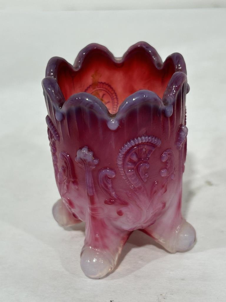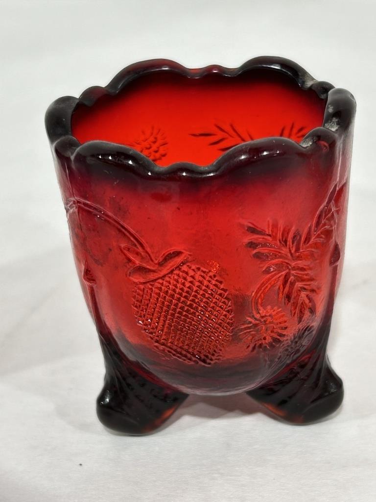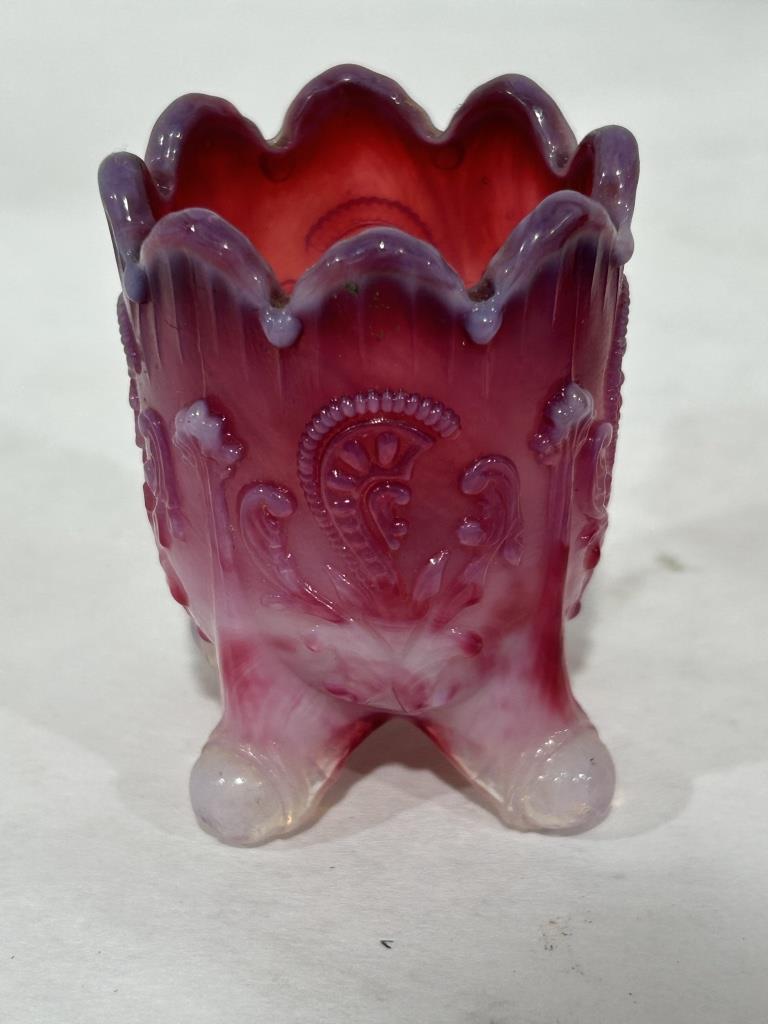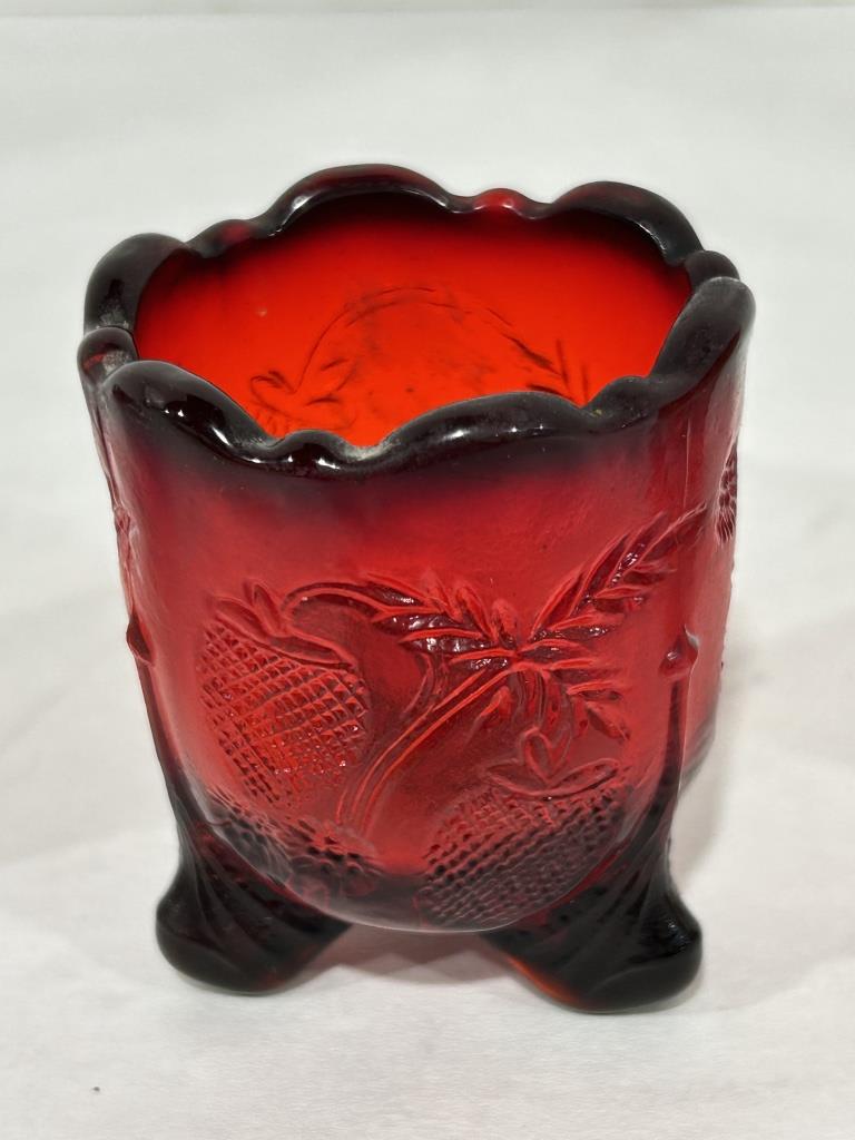 LOT ALSO INCLUDES PINK SLAG TOOTHPICK HOLDER AND RED STRAWBERRY TOOTHPICK HOLDER