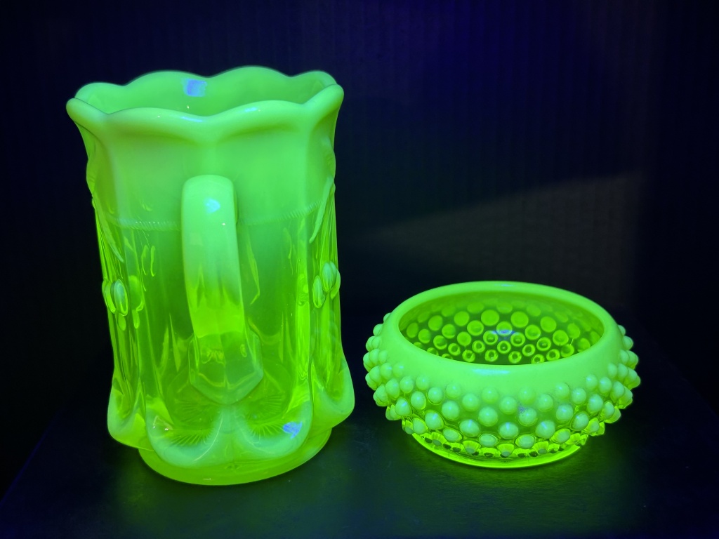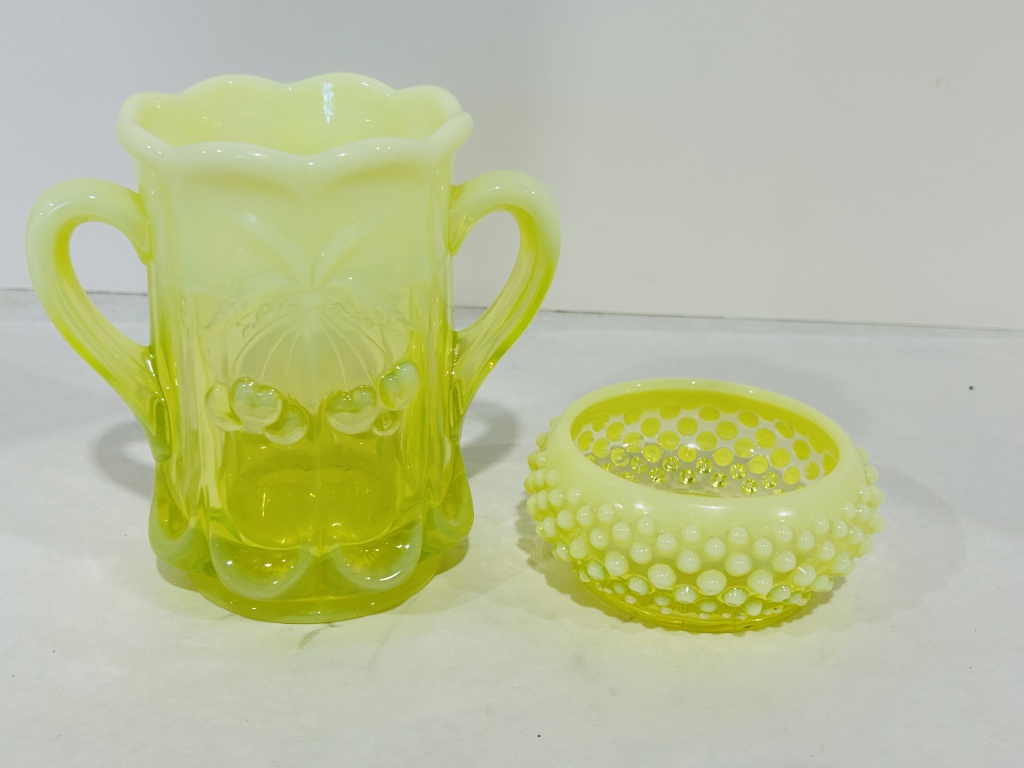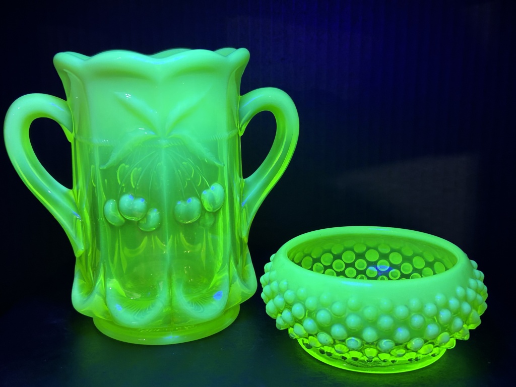 LOT ALSO INCLUDES HOBNAIL URANIUM CANDY DISH