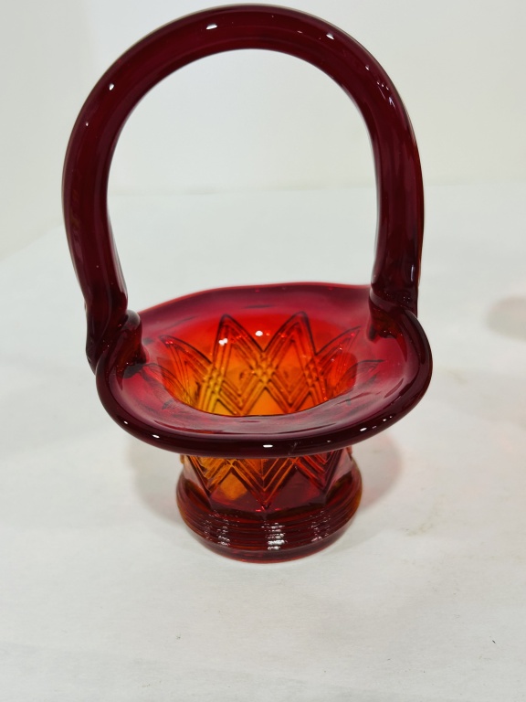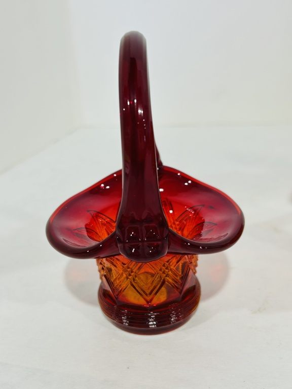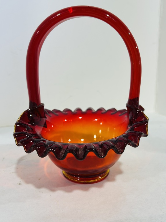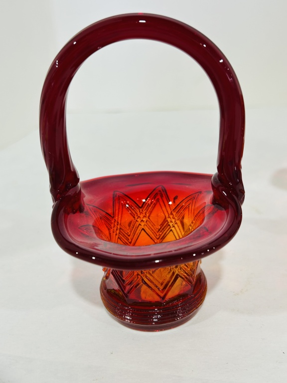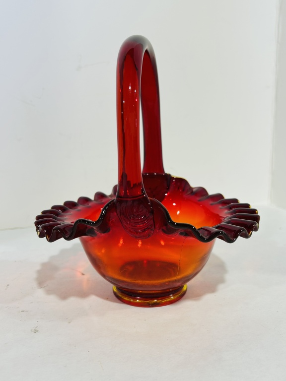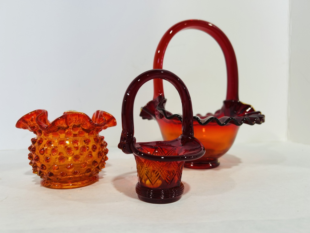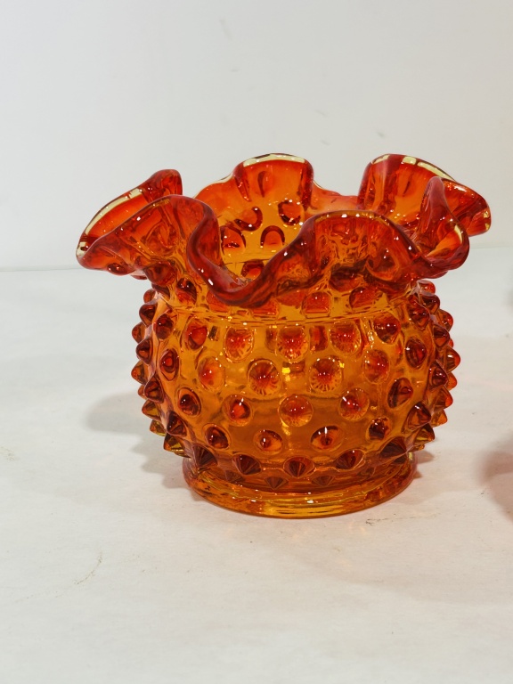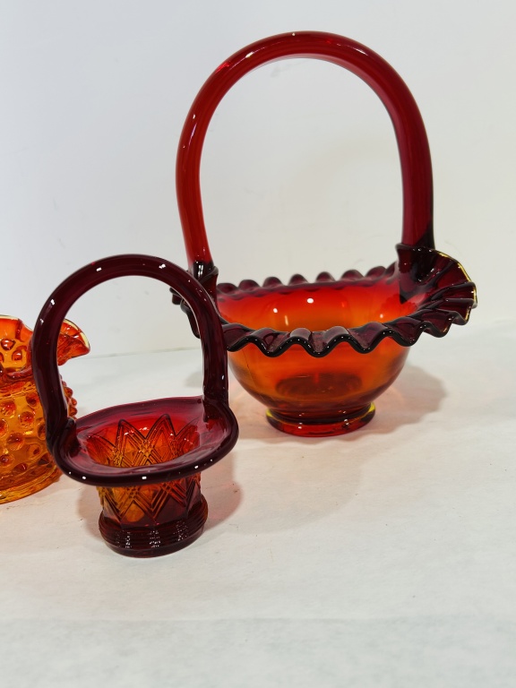 RUFFLED EDGE BASKET, SMALL SMOOTH EDGE BASKET AND RUFFLED EDGE HOBNAIL VASE