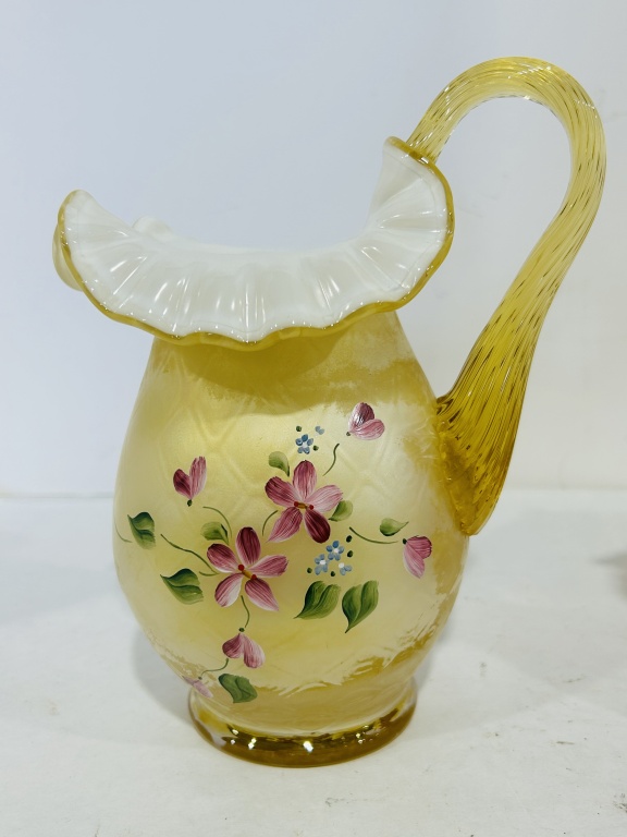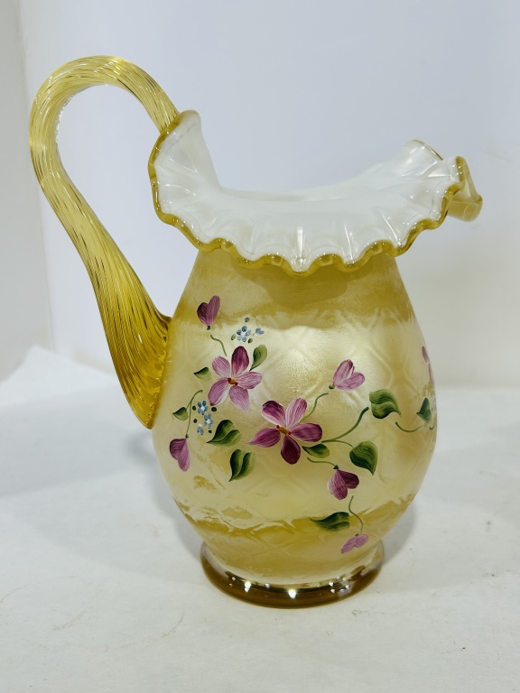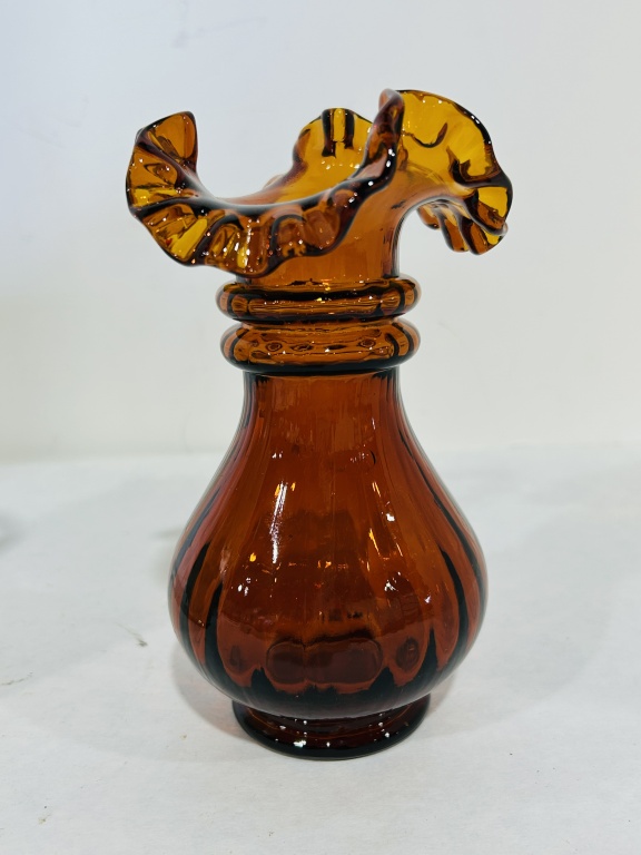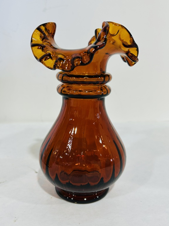 HAS RUFFLED EDGE AND BRAIDED HANDLE, ALSO INLCUDES RUFFLED EDGE CASE IN AMBER