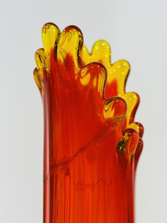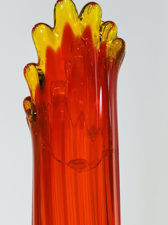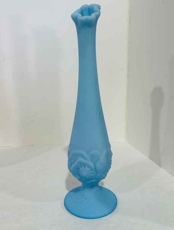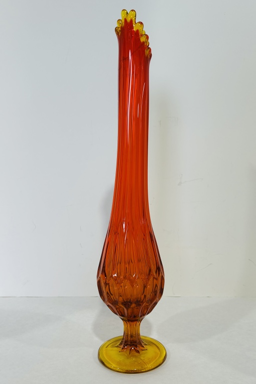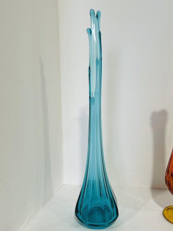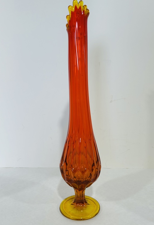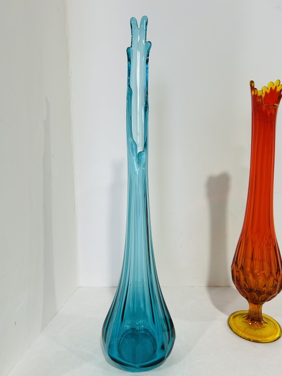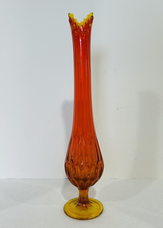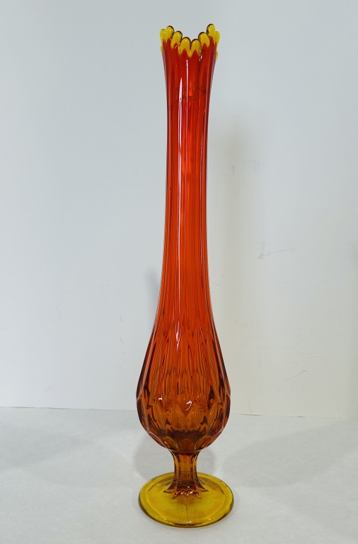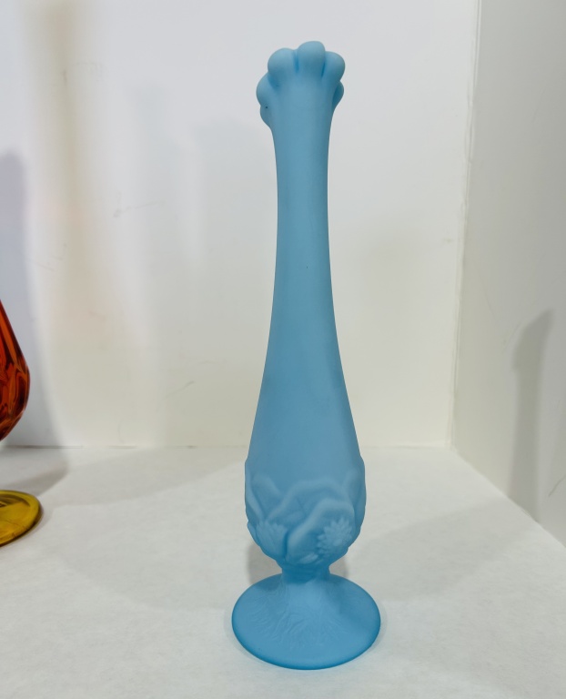 CRACK AT TOP, ALSO INCLUDES BLUE SATIN VASE AND L.E. SMITH SWUNG VASE
