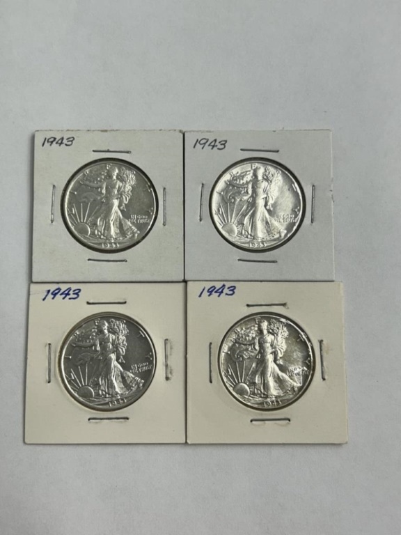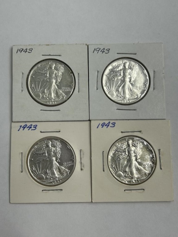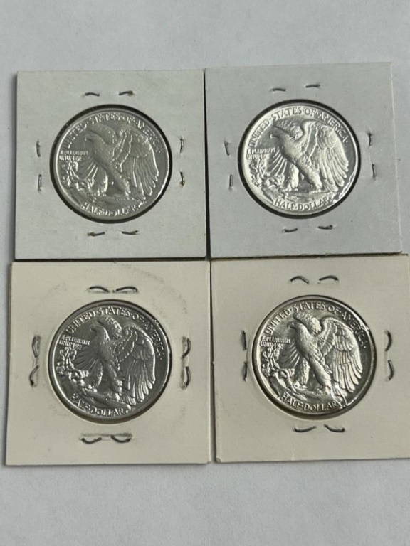 4 1943 WALKING LIBERTY HALF DOLLAR COINS