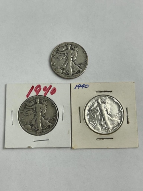 3 1940 WALKING LIBERTY HALF DOLLAR COINS