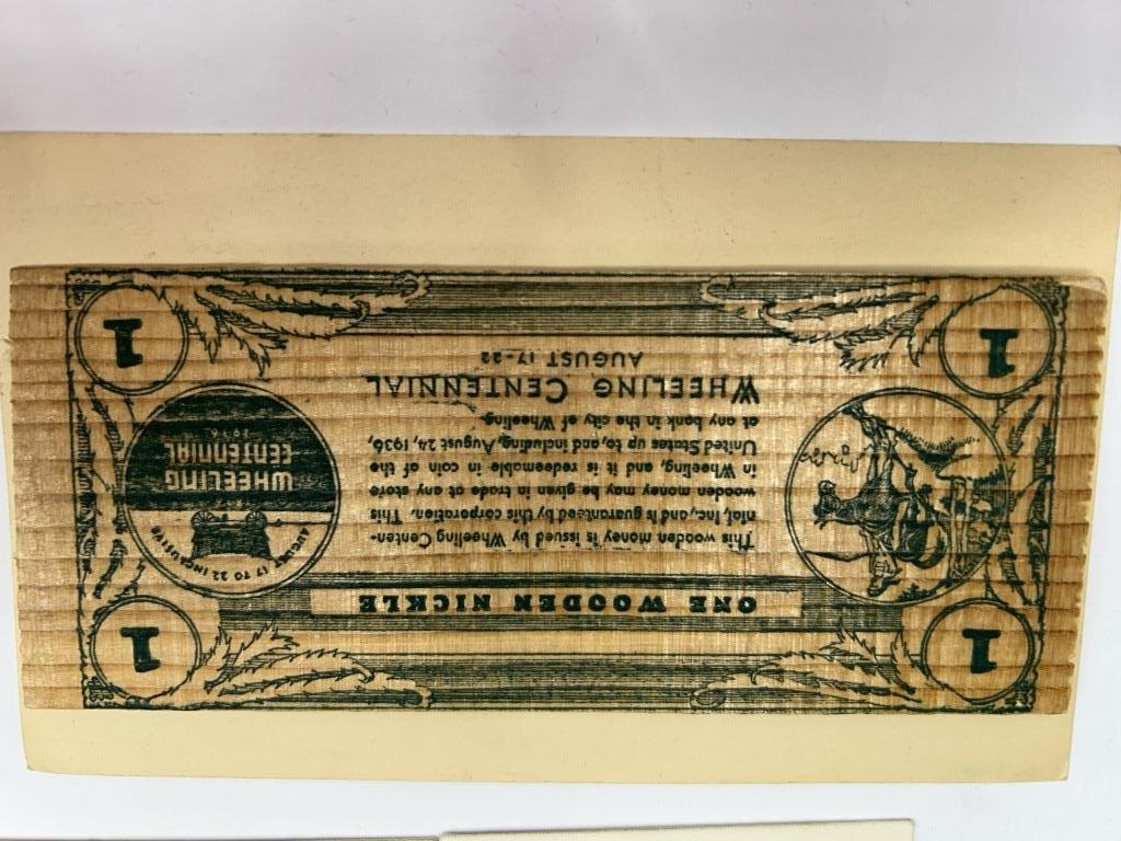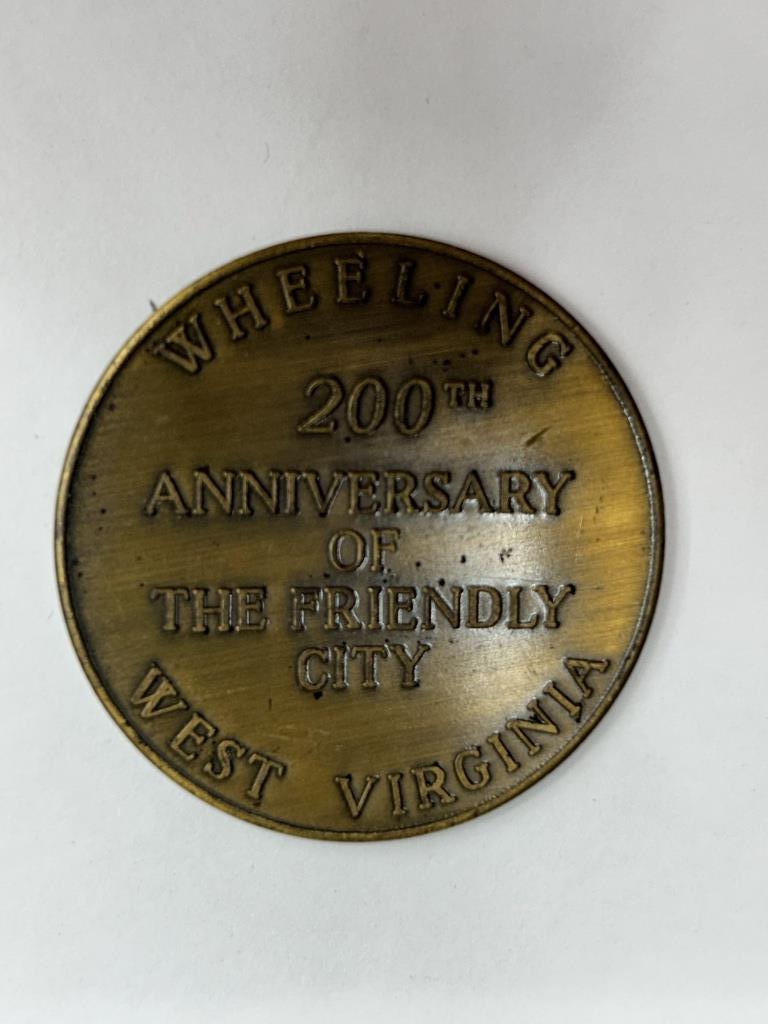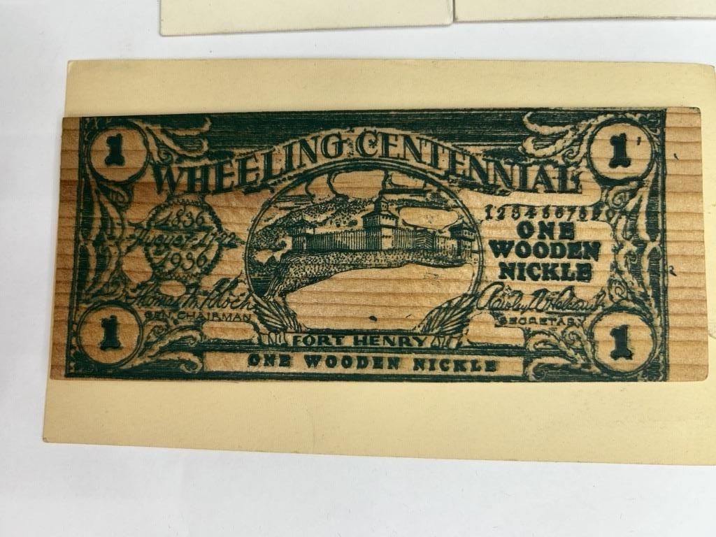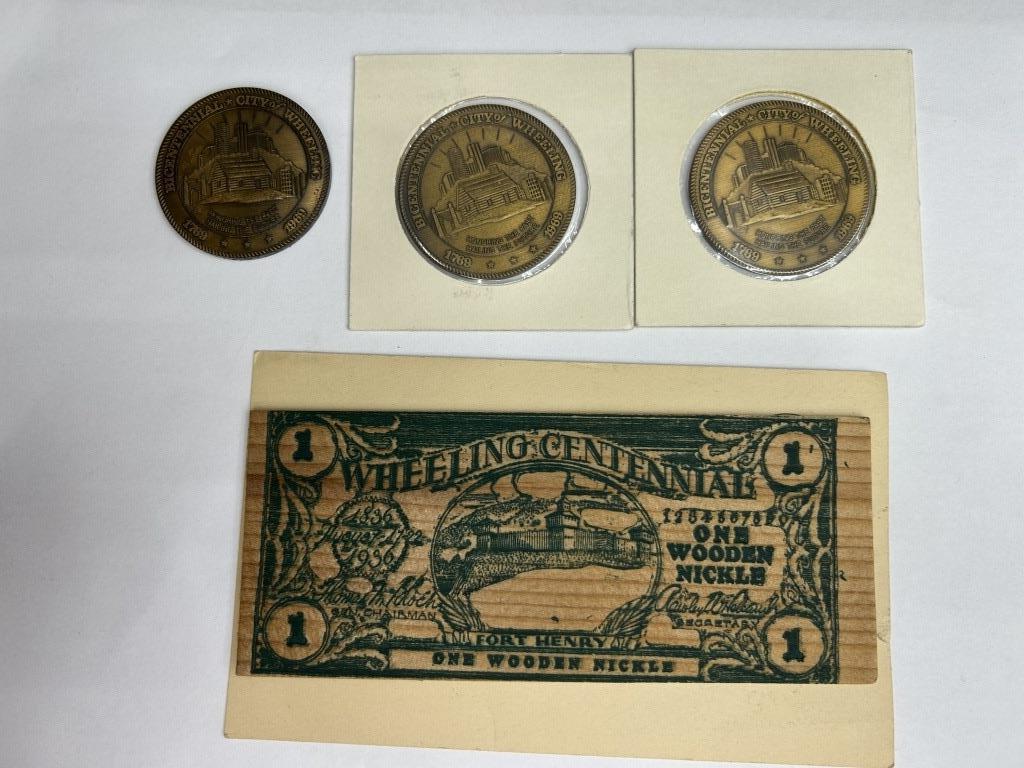 LOT INCLUDES 3 WHEELING WV BICENTENNIAL COINS AND 1 WOODEN NICKEL FT FORT HENRY