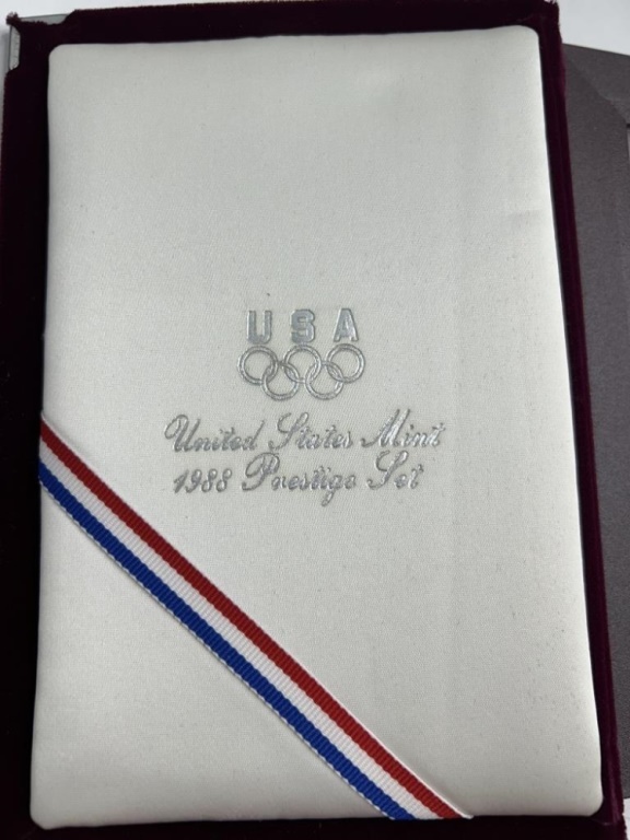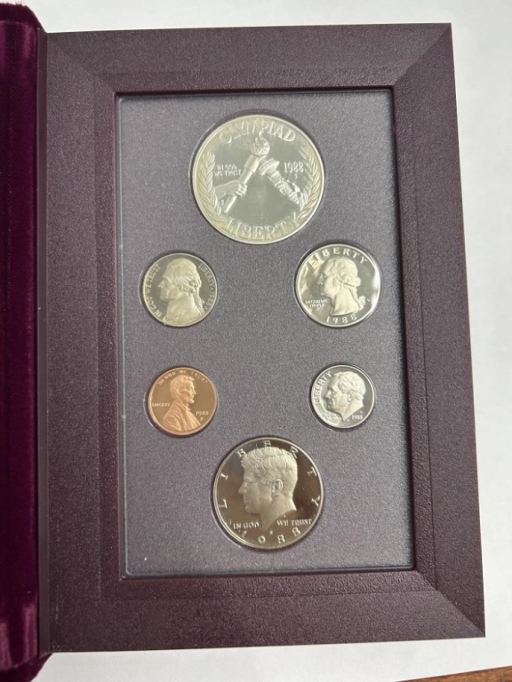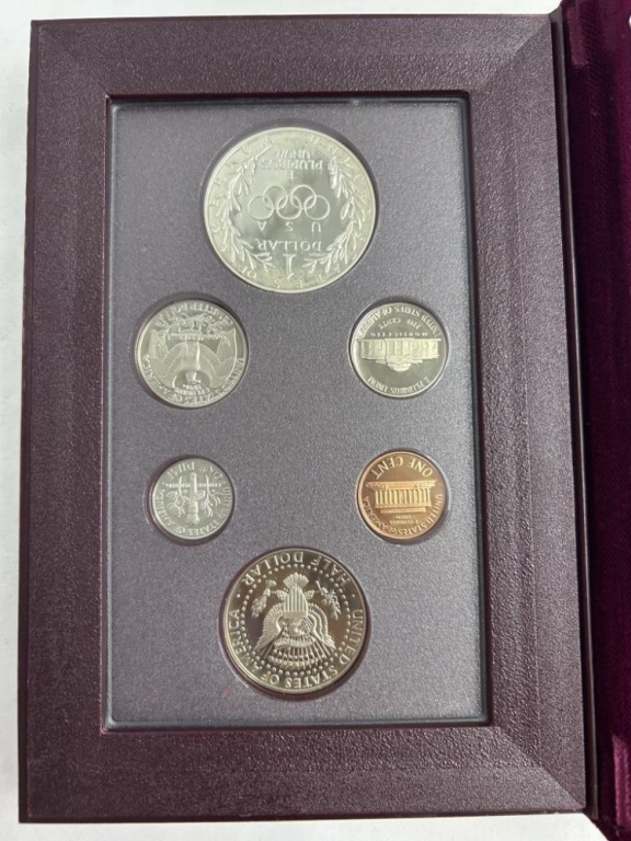 INCLUDES OLYMPIC SILVER DOLLAR, JEFFERSON NICKEL, WASHINGTON QUARTER, LINCOLN PENNY, ROOSEVELT DIME AND KENNEDY HALF DOLLAR IN COLLECTORS CASE