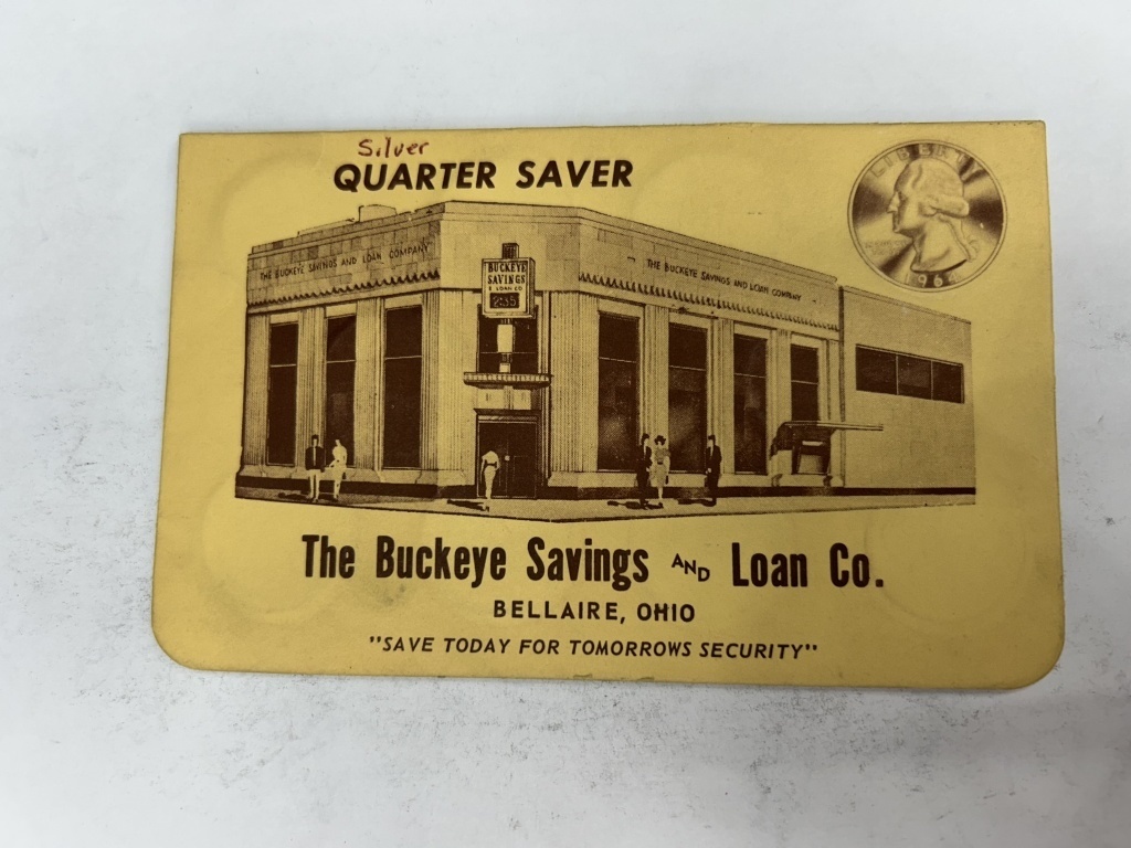 THE BUCKEYE SAVINGS AND LOAN CO BELLAIRE OHIO FILLED WITH QUARTERS DATED PRIOR TO 1964