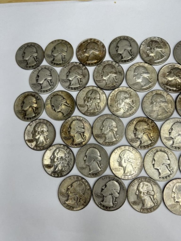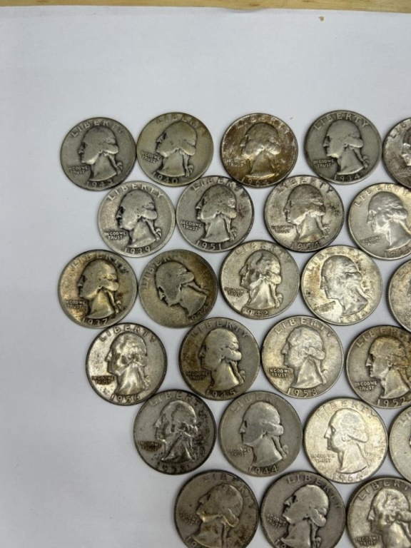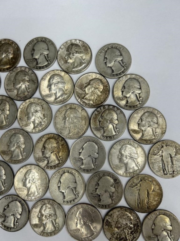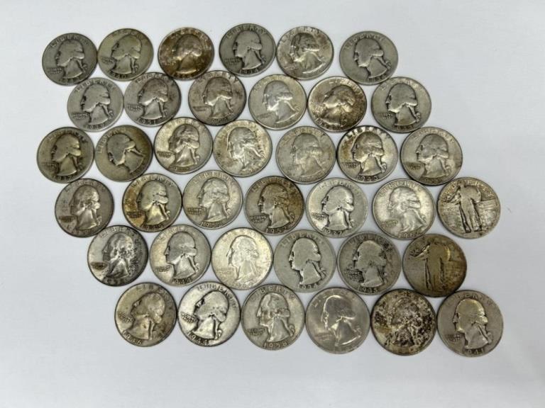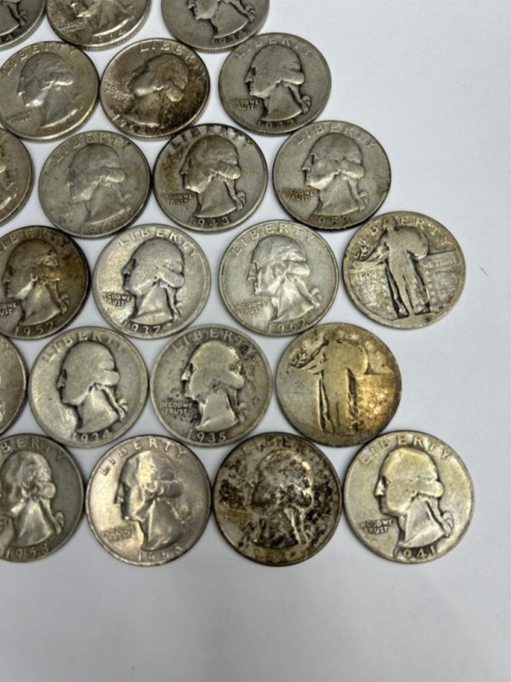 LOT INCLUDES 2 WALKING LIBERTY QUARTERS, ONE 1966 QUARTER AND REST OF LOT IS PRE 64 WASHINGTON QUARTERS
