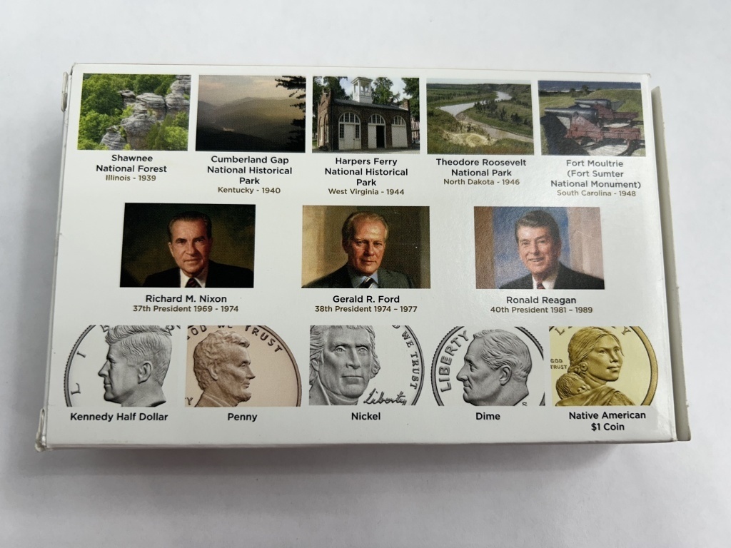 INCLUDES PRESIDENT NIXON, FORD, AND REAGAN COINS, STATE QUARTERS FRO ILLINOIS, KENTUCKY, WEST VIRGINIA, NORTH DAKOTA, AND SOUTH CAROLINA, KENNEDY HALF DOLLAR, PENNY, NICKEL, DIME, AND NATIVE AMERICAN COIN