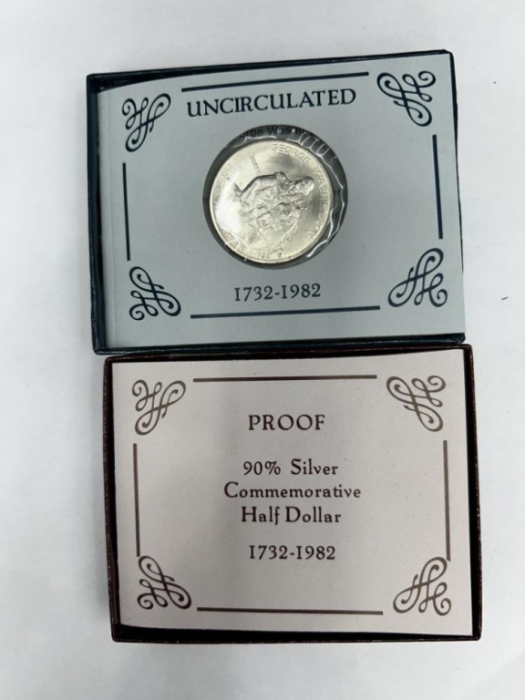 2 COMMEMERATIVE 1982 GEORGE WASHINGTON SILVER HALF DOLLARS
